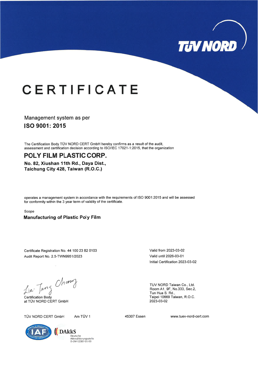 後來體認到台灣電子業在世界上的領導地位將創造許多具有高潔淨度的膜類 應用材料使用,決定讓公司轉型,從傳統的石化加工業變為更高資本及技術 的科技業,讓我們的產品可以更符合各類型電子業的需要。在此同時,也因 為應用的材料越來越多,使我們可以更多角化經營不同的傳統或非傳統業界, 以符合不同客戶的需要。